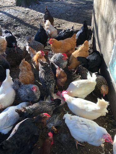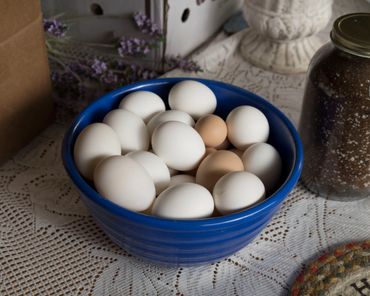 We care for a wide range of laying hens that produce a colorful assortment of eggs. Colors that range in hues of blue and green to tan and deep chocolate brown. Sold in clear recycled cartons to display their appealing beauty.